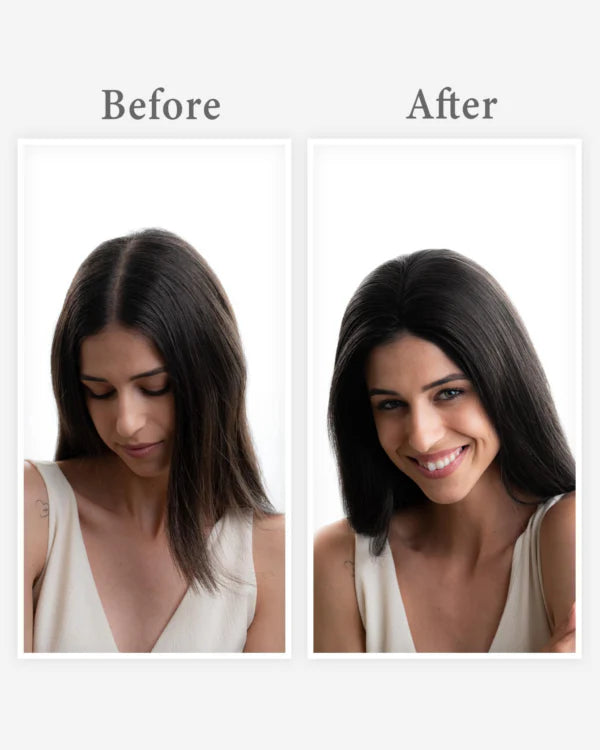 Are you tired of battling with thinning hair around your front and top areas? Well, fear no more! Our Mini Scalp Silk Hair Topper, ready to rescue your hair day. This lightweight and seamlessly crafted hair topper provide a natural-looking hairline with invisible knots, this silk topper guarantees a natural-looking hairline, thanks to its invisible knots. Plus, you can enjoy a full day of confidence without any discomfort or worrying about stressing out your natural hair, thanks to its secure clips. Say hello to thicker, fuller hair and goodbye to those thinning concerns!