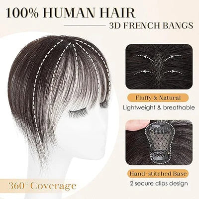 Wispy Bangs Hair Topper 360° 3D Cover Real Clip